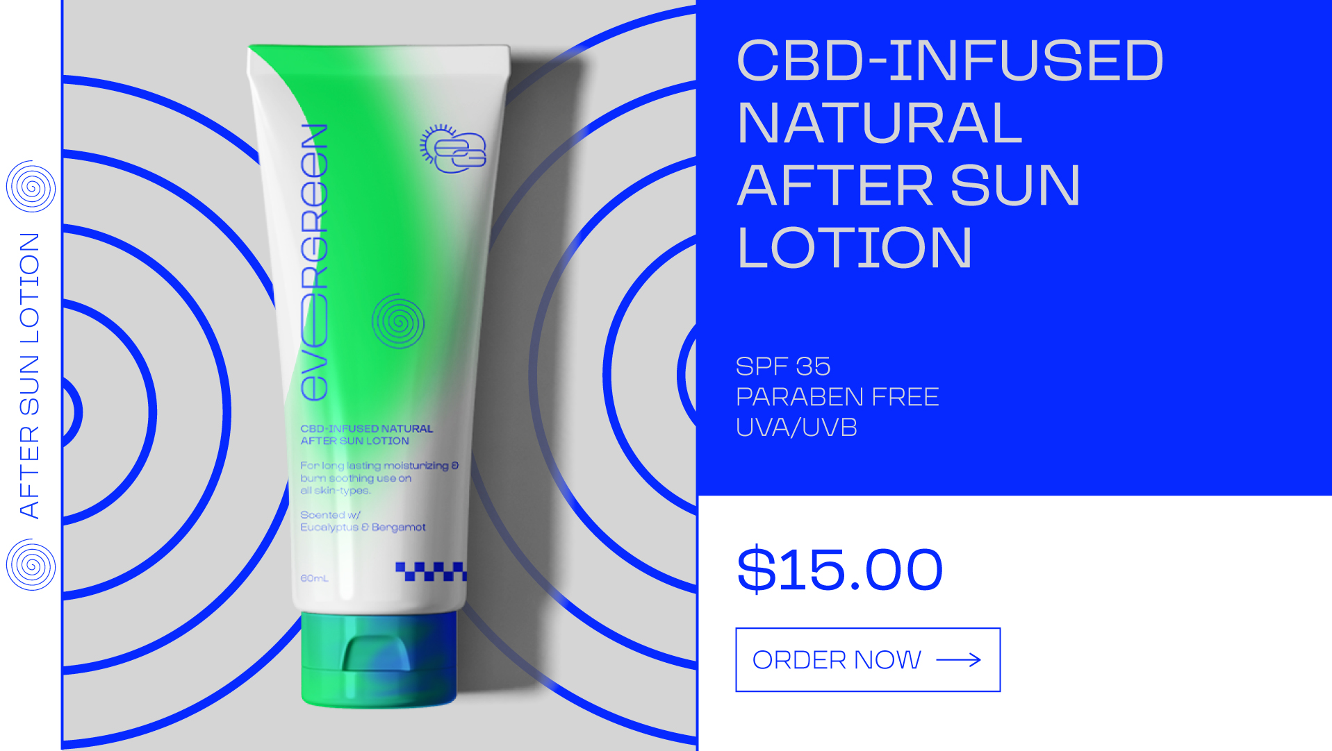 Evergreen Sun is a skin care brand focused on sun protection. It relies on a CDB infused formula to calm the skin after sun burn and has a slight green tint to balance out the red after being burned.