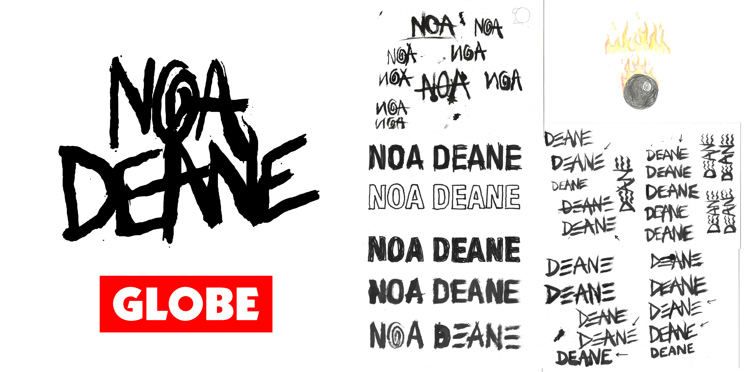 While I was designing skateboards at Globe, I got the opportunity to work on some branding and packaging for Noa Deane’s Sprout shoe colorway. Noa is known for being inspired by and surfing like the icons of the 90s, so we created a grungy, nostalgic graphic package. This included a logo lockup, tongue label, footbed graphic, and shoe box packaging.